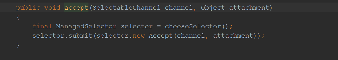 这个_manager就是我们上文说到的SelectorManager,我们再看它的accept方法: