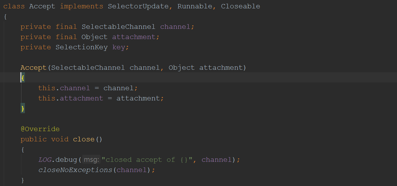 Acceptor实现了Runnable接口,它是被扔到QueuedThreadPool线程池里面执行的: