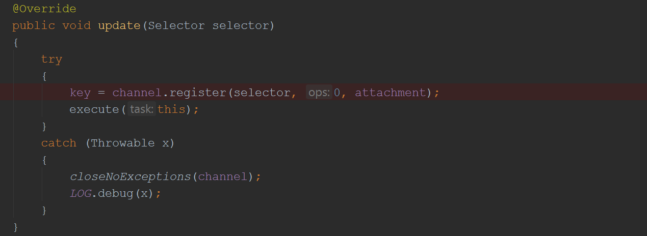 这个方法核心的部分是这句: _updates.offer(update),_updates是一个ArrayDeque<SelectorUpdate>,就是说submit方法会把一个SelectorUpdate对象塞到一个Deque里面,那我们再来看一下这个SelectorUpdate对象是什么: