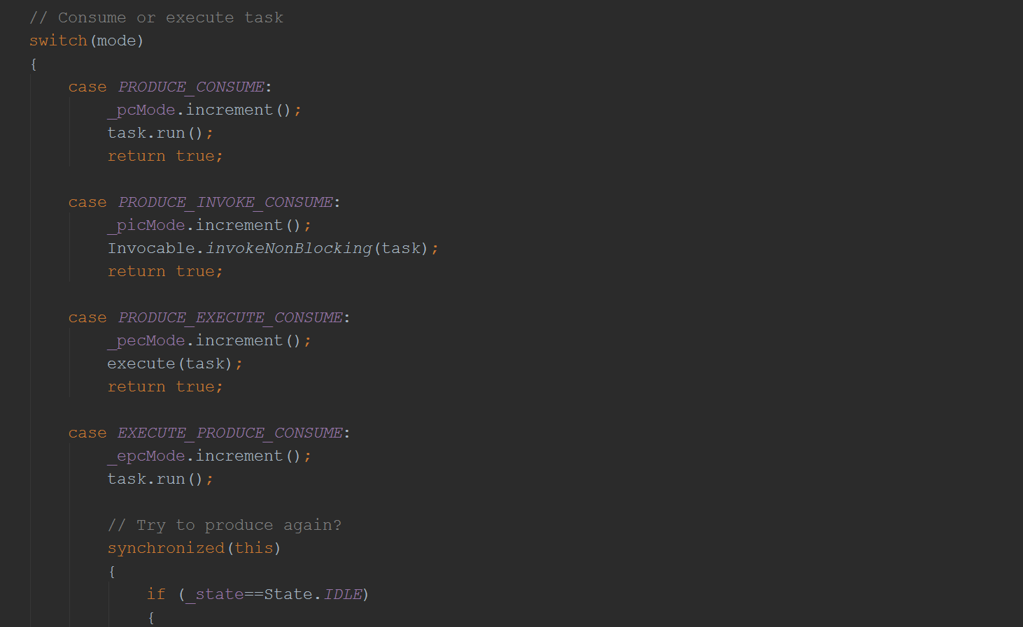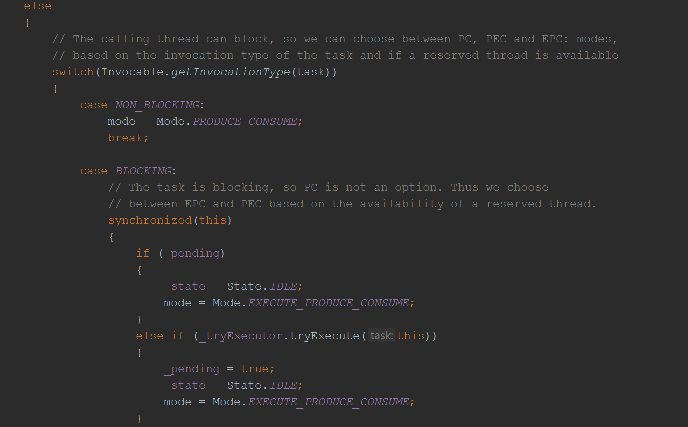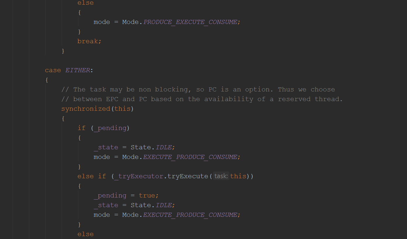 然后就通过线程池去执行了EatWhatYouKill的的produce方法(这里用的是Java8的语法,而一个方法其实就是一段可执行的字节码,自然是runnable的):