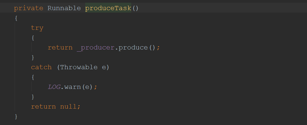 这个方法比较长,我们看核心的,先看它调用的produceTask方法是生产了什么东西: