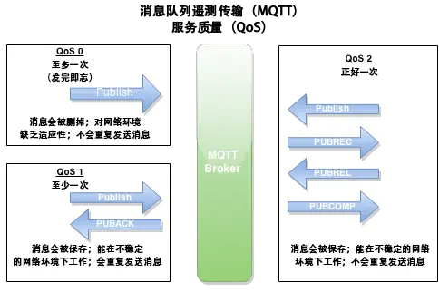 QoS(服务质量)定义了服务端(Broker) / 客户端(Client)确保能收到消息的工作或尝试的方式。消息可以以任何 QoS 级别发送,客户端也可以选择以任意 QoS 级别来订阅主题,后者选择的是他们能收到的最高 QoS 级别。