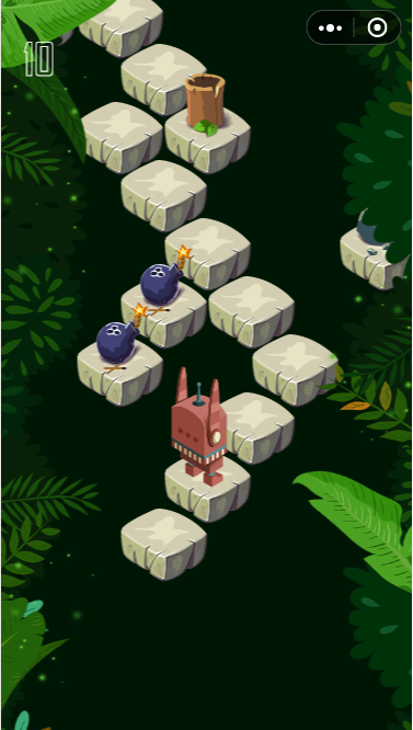 分层按顺序叠加绘至画布,先将背景绘上,通过算法计算出台阶位置,结合上一次的位置用requestAnimationFrame实现移位生成新的台阶,机器人单独抽离出来的,没有和台阶一起实现,通过位置计算,得到机器人的位置,绘制字台阶上,最后将顶层的树叶绘制上。
