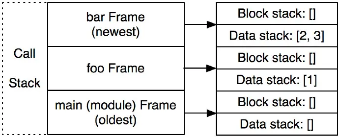 首先,一些指令需要参数。在真正的Python bytecode中,大概有一半的指令有参数。像我们的例子一样,参数和指令打包在一起。注意指令的参数和传递给对应方法的参数是不同的。