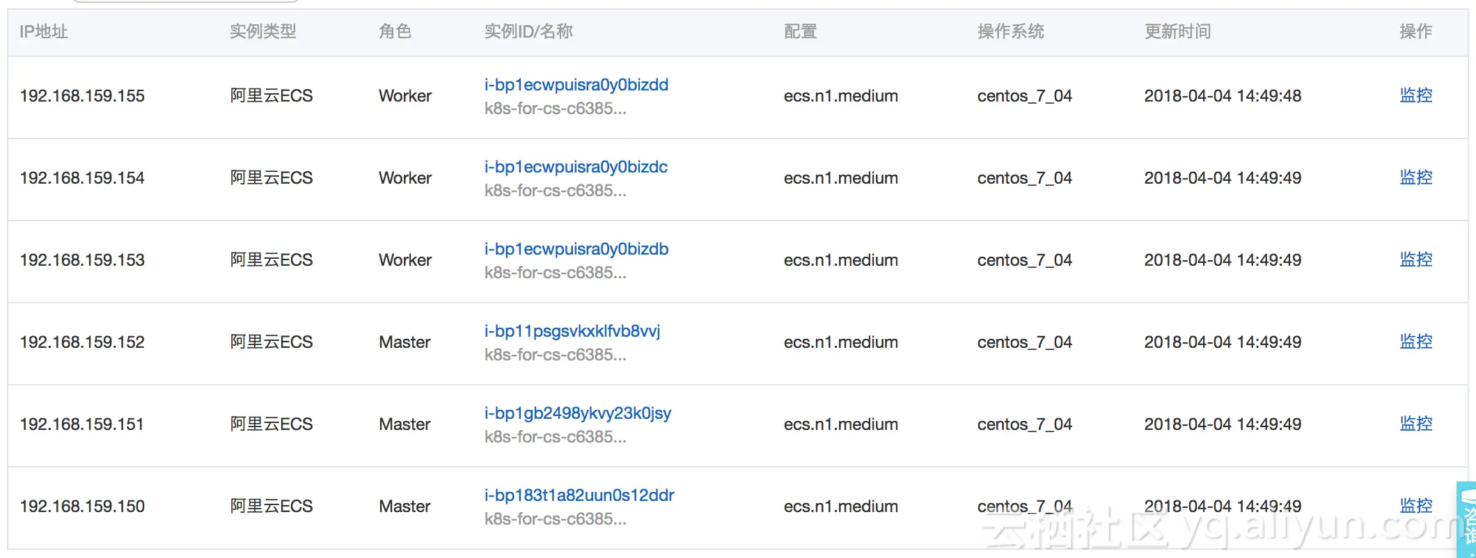 我们通过阿里云容器服务控制台创建一个Kubernetes集群,这里以创建3台Worker节点集群为例。