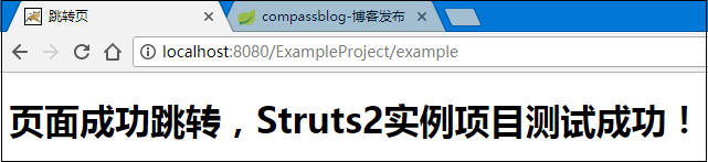 <%@ page language="java" contentType="text/html; charset=UTF-8" pageEncoding="UTF-8"%><!DOCTYPE html PUBLIC "-//W3C//DTD HTML 4.01 Transitional//EN" "http://www.w3.org/TR/html4/loose.dtd"><html><head><meta http-equiv="Content-Type" content="text/html; charset=UTF-8"><title>跳转页</title></head><body> <h1>页面成功跳转,Struts2实例项目测试成功!</h1></body></html>