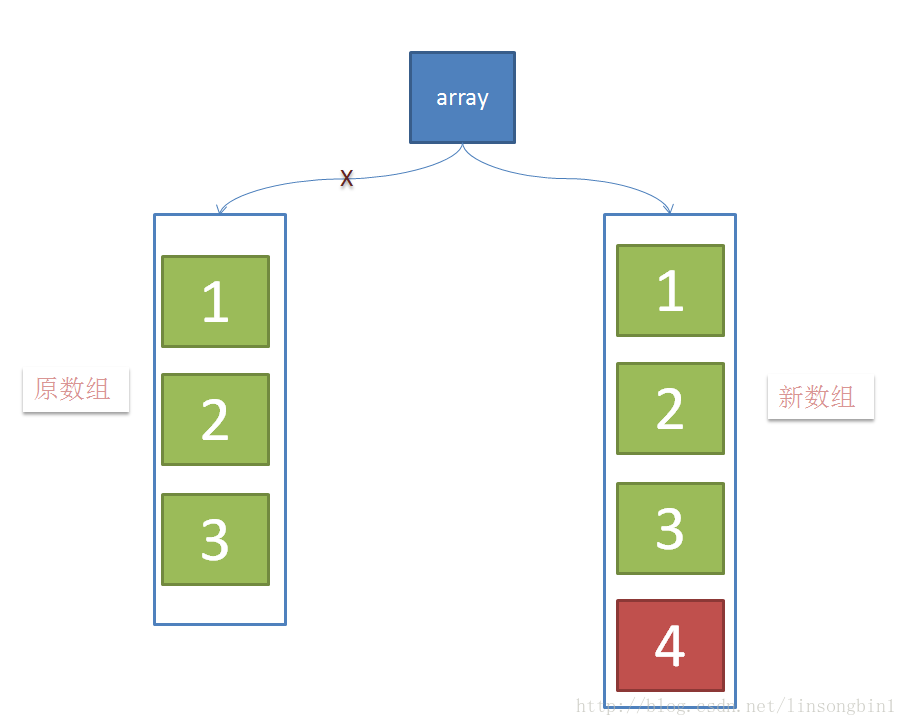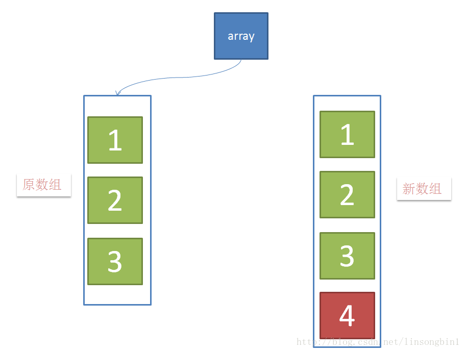 当元素在新数组添加成功后,将array这个引用指向新数组。