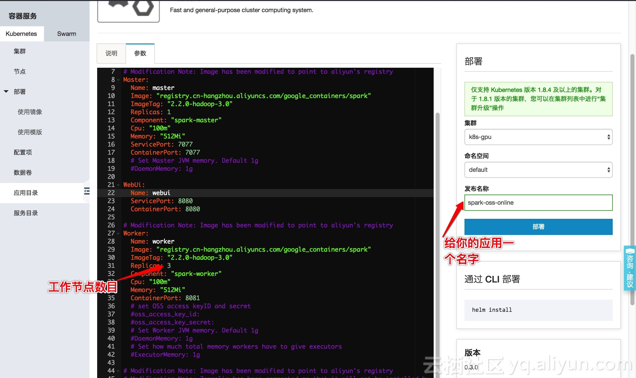 3.(可选)修改工作节点数目 Worker.Replicas: 3