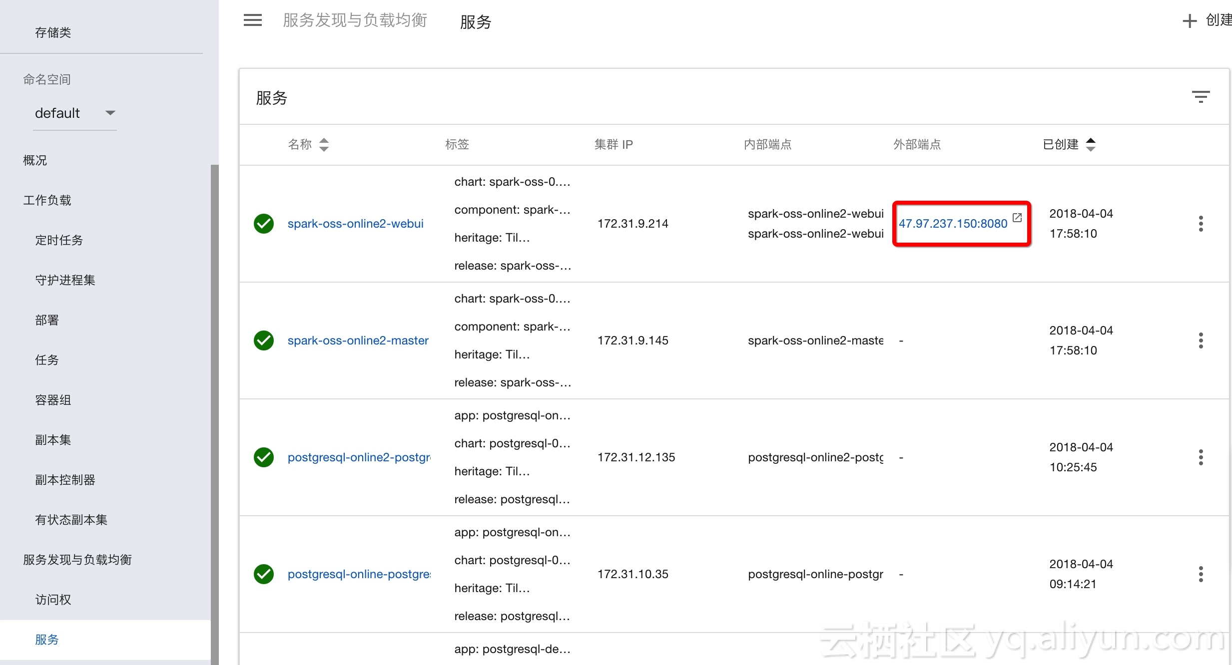 6 点击 服务, 查看外部端点, 点击URL访问Spark集群