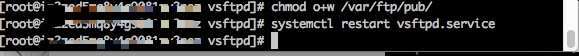 chmod o+w /var/ftp/pub/ #更改/var/ftp/pub目录的权限