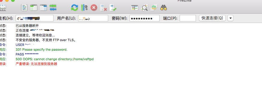 补充:如果发生如下情况,请执行 sudo chmod -R 777 /home/vsftpd,设置/home/vsftpd 的权限就可以了