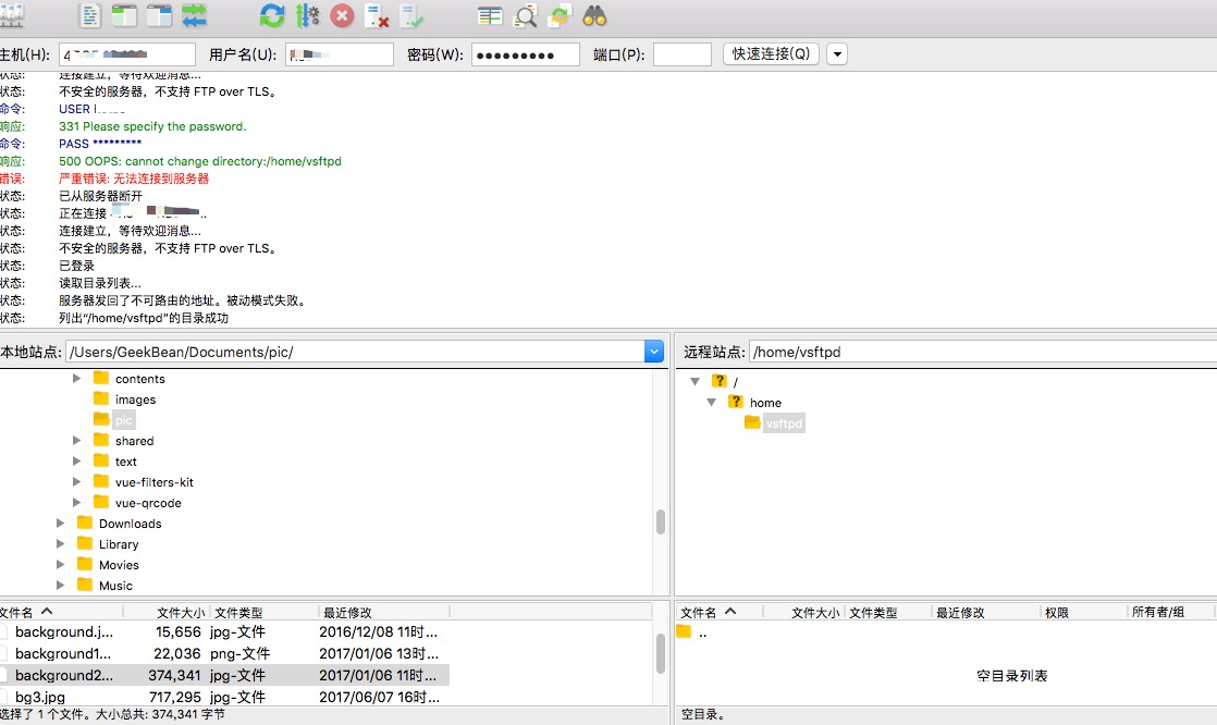 3、用这个上面设置的账号密码来链接ftp,不出意外,你会看到这个(反正我是看到了,如果你的没有,是正常连接,当我什么都没说)