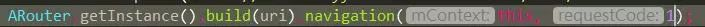 Postcard类中有五个navigation方法,但最终调用的都是ARouter类中的navigation方法,也可以这么说路由跳转首先是先把路由传进去构造一个Postcard,然后调用ARouter的navigation方法进行跳转。