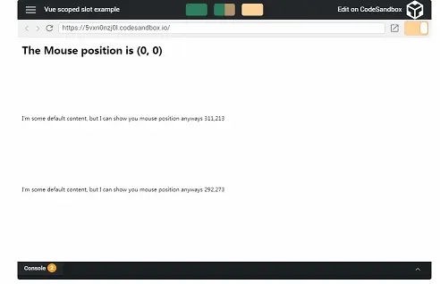 您可以轻松指定默认内容。在上面的示例中,我传递一个指定的槽,它定义了一个自定义消息,但是当我没有指定一个插槽时,它将回退到默认的插槽。默认插槽也为组件的用户提供了一个“组件API”,这样您就不必猜测您可能需要渲染什么。