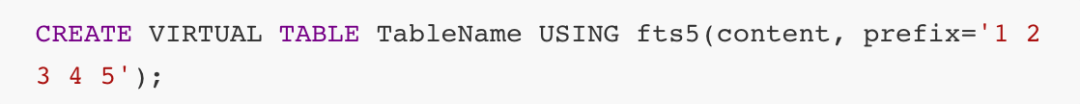 路径(2)是在建立索引表时未使用Prefix索引,所以用户在输入Query时,FTS5通过临时搭建一个前缀树来查找以Query为Preifx的索引集合。