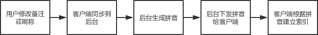 用户修改备注或者昵称后,需要等待后台下发拼音后才能有正确的拼音索引,导致拼音索引建立不够及时。