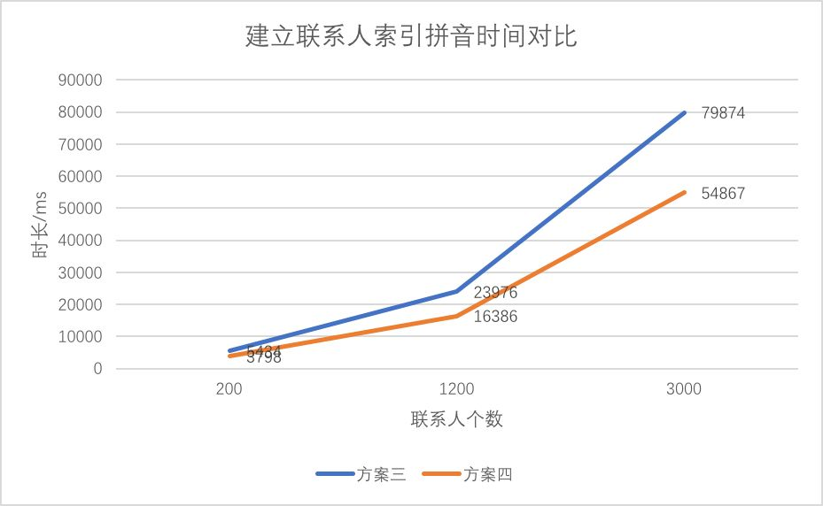 由于联系人拼音数据的减少,使得单个联系人的数据量下降,减少了Insert SQL的执行时间,建立联系人索引的时间也有较为明显的降低,减少30%左右。