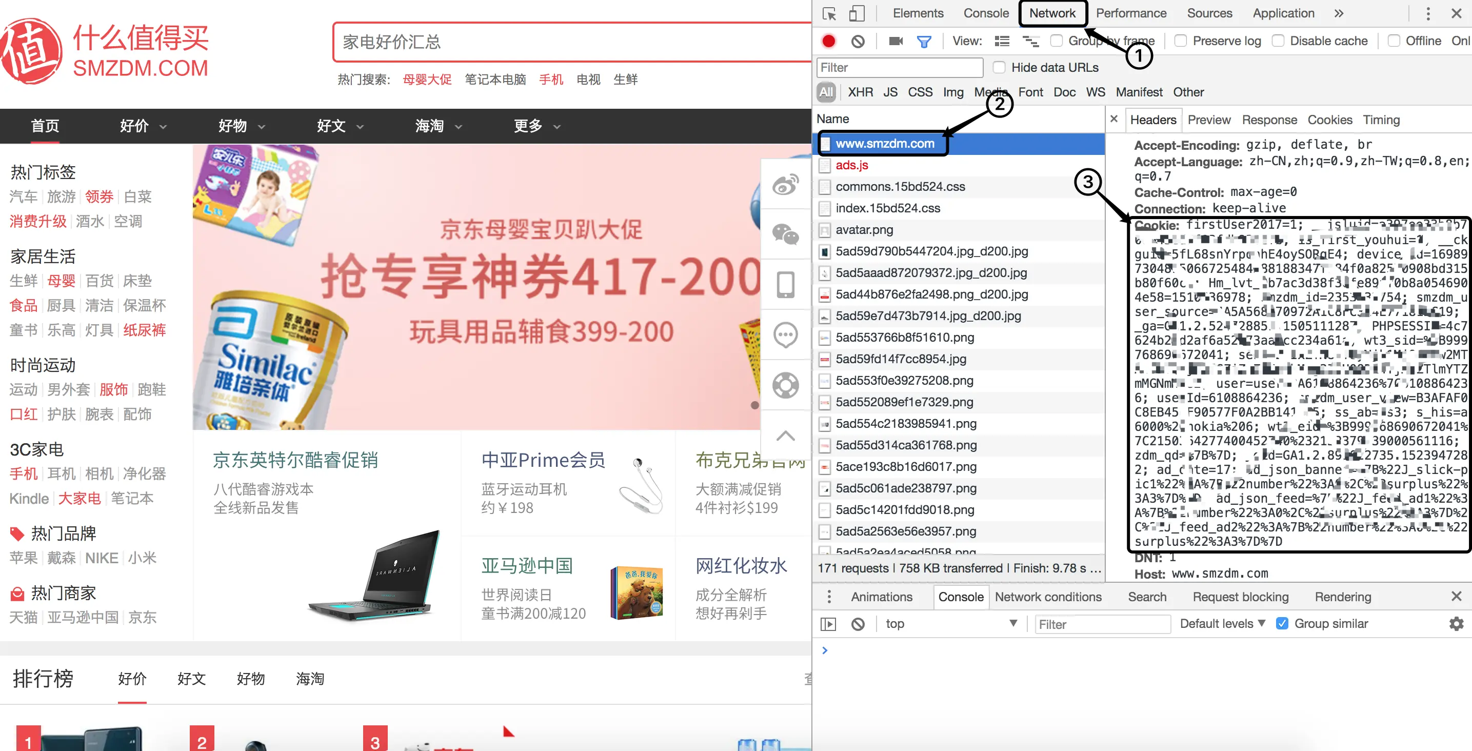 获取什么值得买cookie方法