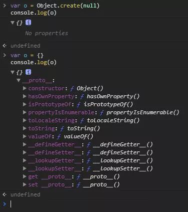 我们进一步比较一下Object.create(null)和{}创建控对象的区别: