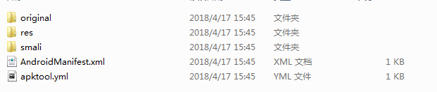 需要讲一下的是这里会得到一个smali文件夹,里面就是我们的代码,只不过是.smali格式的而不是.java格式的