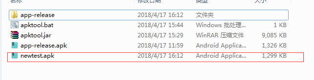 运行命令apktool b app-release -o newtest.apk 然后就会在文件夹下得到一个新的apk文件