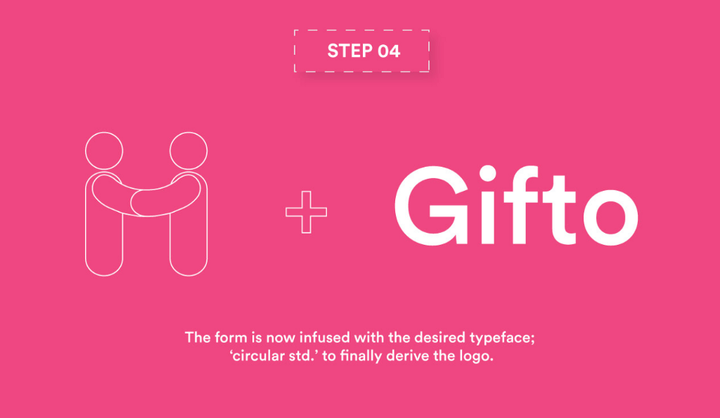 图标的概念设计希望与「Gifto」这个词融合在一起。但是为了提升 Gifto 这个单词的可读性,就不能单纯的将它们融合在一起,而要以一种更为和谐的方式。