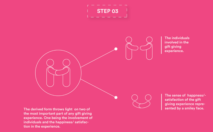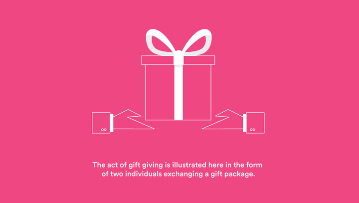 对送礼物者和接受者之间的互动做进一步简化和抽象,将他们的手融合在一起,并移除礼物盒元素以保持图标整体的空间感。
