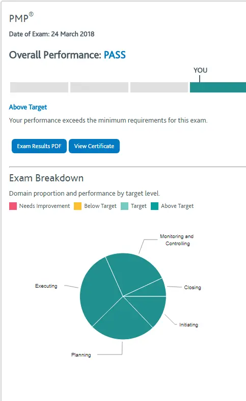 我是参加的今年3月26日PMP考试的学员. 这次考试成绩从昨天早上陆陆续续已经放出. 我所在的培训群中也是5A不断.今天早晨打开电脑刷了一下官网, 发现自己也拿到了5A, 于是一颗提着的心终于放了下来~