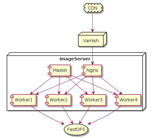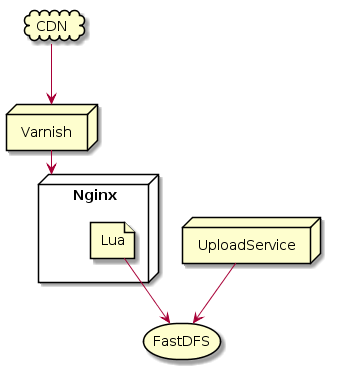 这里的Nginx不仅仅用来做LB,因为Nginx能提供很丰富的脚本,可以省去很多开发工作量,并且当有获取原图的需求,可以通过Nginx sendfile直接从存储取回,节省不必要的系统开销。