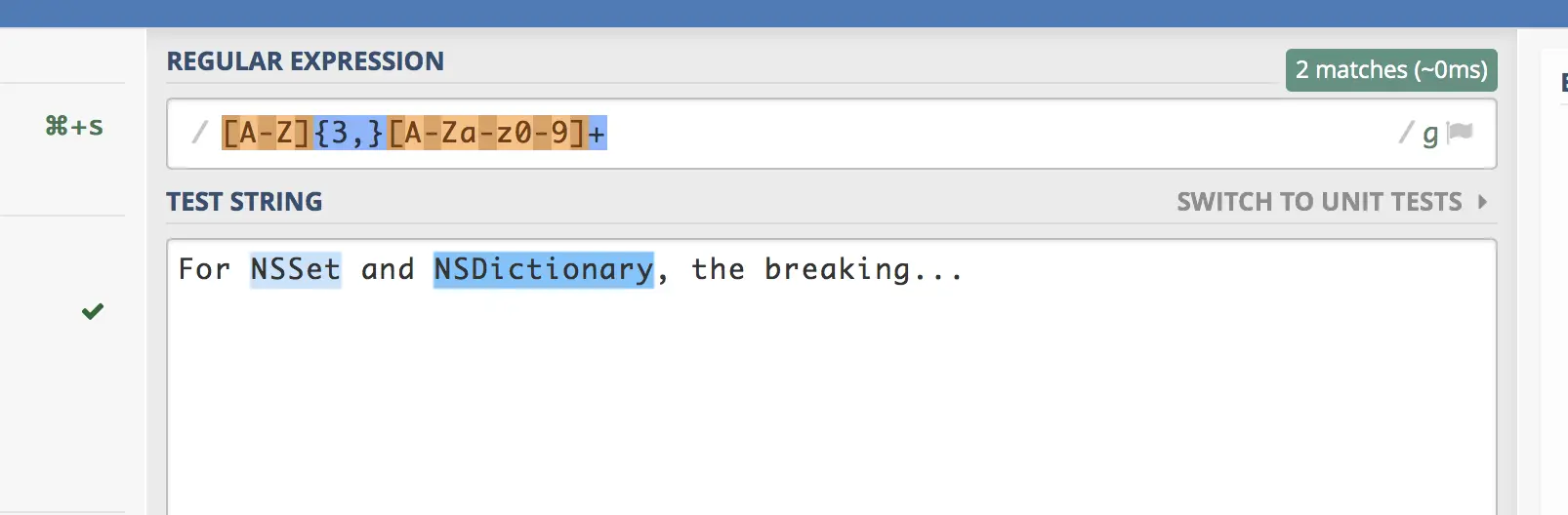 最后, NSRegularExpression 最强大的特性之一是,仅扫描字符串中需要的部分。处理长文本,挺有用的。处理耗资源的正则匹配,也是。
