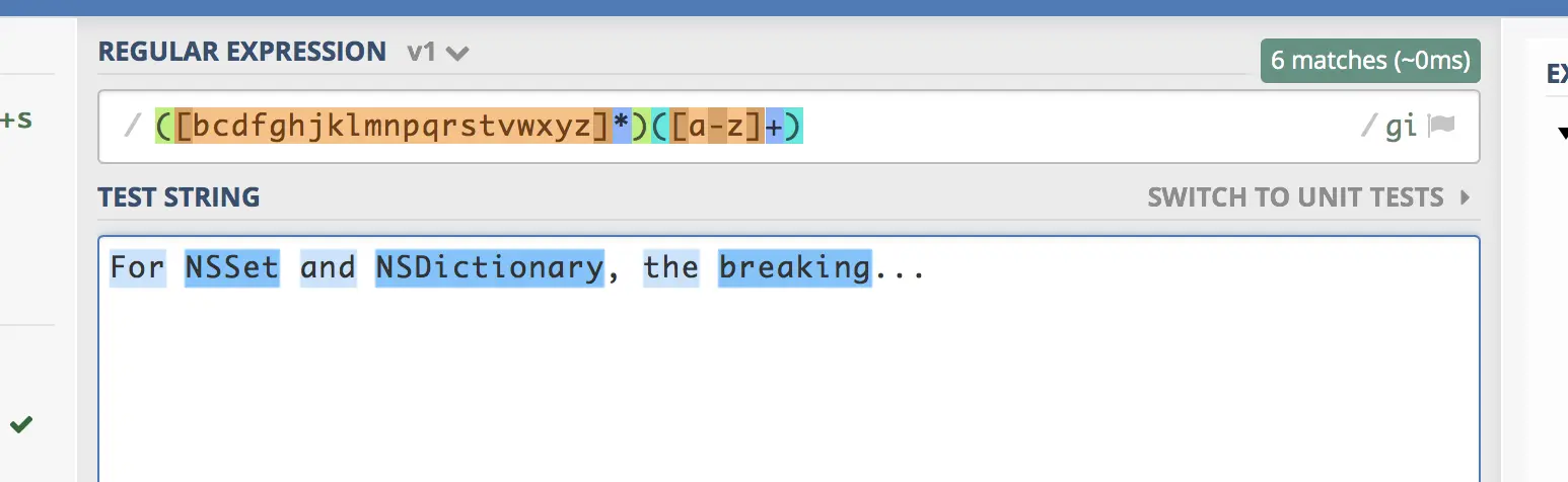 * .withTransparentBounds: 超过界限。允许正则在搜索范围前,向前查找。反之,向后查找。还有单词的边界。(尽管不适用于,实际的匹配字符)