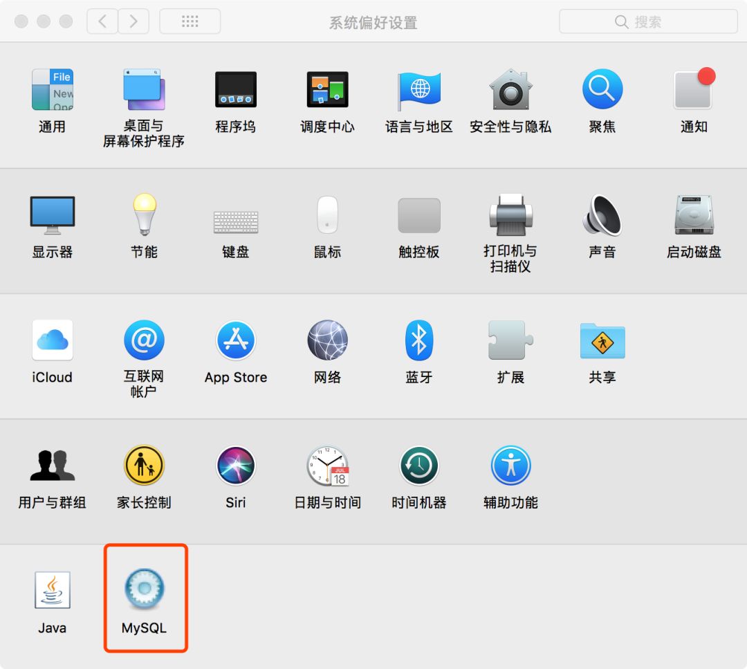 打开系统偏好设置,找到mysql。