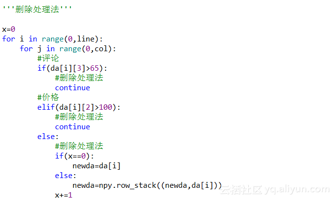 根据上图所示,将评论大于100000,价格大于1000的数据都处理掉,就可以达到处理异常值的效果。而具体的两种处理方法的实现过程如下: