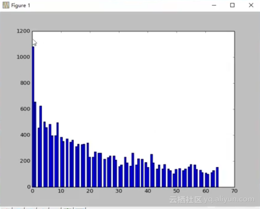 taob表中的淘宝商品评论直方图如下图所示,大致上是递减的曲线: