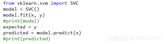 SVM算法是一种精准分类的算法,但是其可解释性并不强。它可以将低维空间线性不可分的问题,变为高位空间上的线性可分。SVM算法的使用十分简单,直接导入SVC,然后训练模型,并进行预测。具体操作如下: