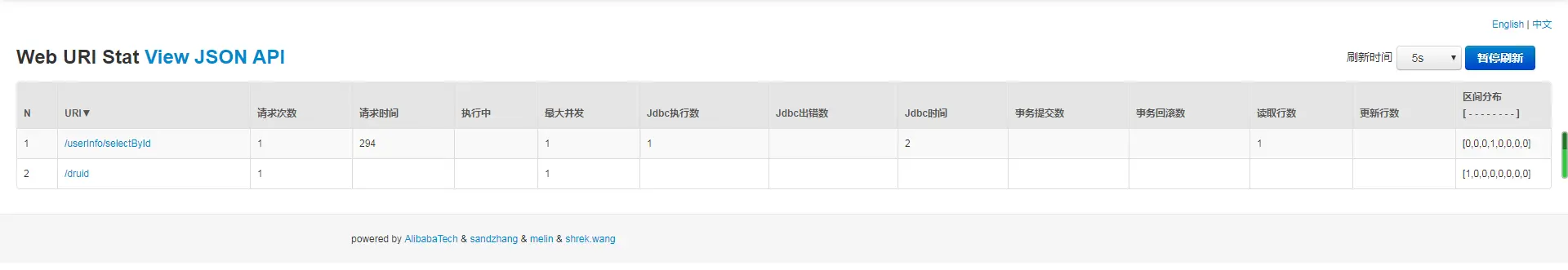 可以查看数据源,SQL监控,URL监控等信息