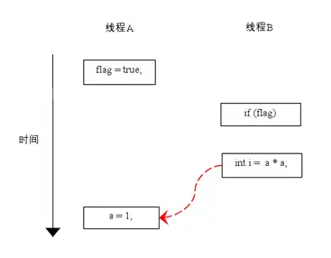 如上图所示,操作1和操作2做了重排序。程序执行时,线程A首先写标记变量flag,随后线程B读这个变量。由于条件判断为真,线程B将读取变量a。此时,变量a还根本没有被线程A写入,在这里多线程程序的语义被重排序破坏了!