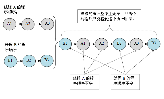 - 一个线程中的所有操作必须按照程序的顺序来执行。