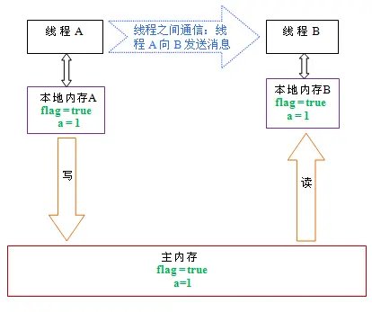 如上图所示,在读flag变量后,本地内存B已经被置为无效。此时,线程B必须从主内存中读取共享变量。线程B的读取操作将导致本地内存B与主内存中的共享变量的值也变成一致的了。