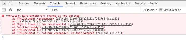 但这仅仅是我们本地能够看到而已,Rollbar看不到,在这种情况下Rollbar只能接收到类似这样的信息。