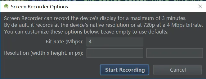 2.点击屏幕录制按钮,弹出Screen Recorder Options框,我们直接采用默认的参数配置,点击Start Recording开始录制。