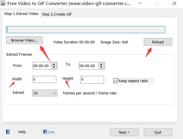 1.打开Free Video to GIF Converter(资源我就不放了,大家自行下载),点击browse Video选择要转换的视频,设置width和height后点击next。
