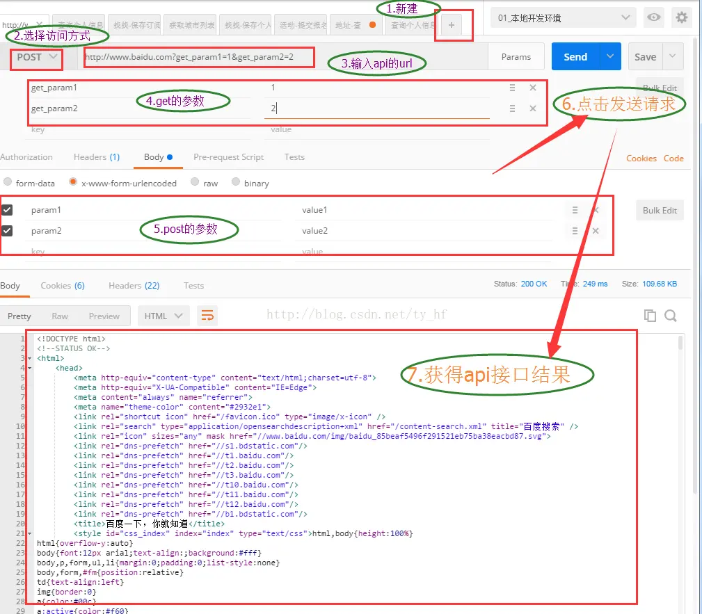 二.简单使用postman 下载并安装,打开界面以后,试着发起一次http请求吧,其实也很简单,如下以访问百度为例。