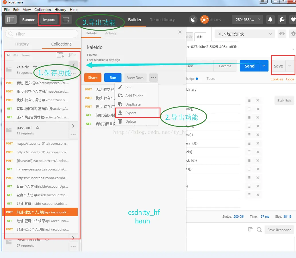 六.测试收藏夹和用例数据分享 自己编写了很多用例与接口了,把他保存下来,方便团队其他成员使用,或者自己备份。