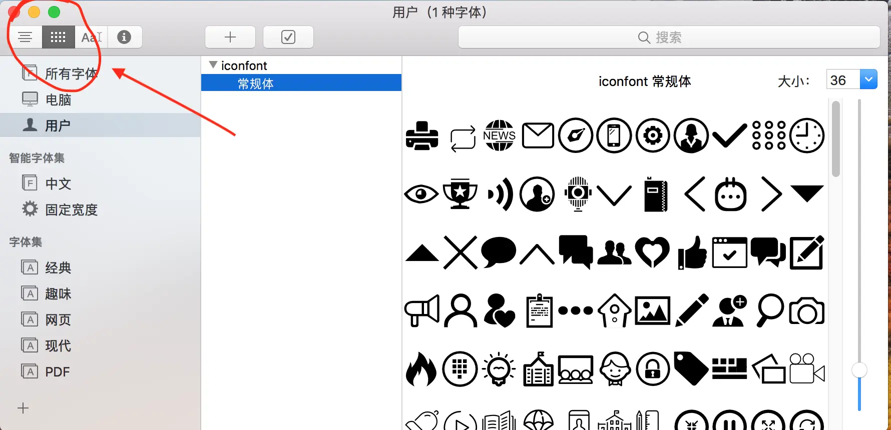 MAC上查看自定义的ttf字体图标对应的Unicode编码