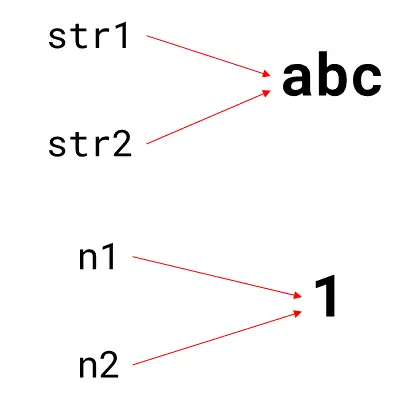 在上面的例子中,两个引用(str1 和 str2)都指向同一个对象('abc'),所以他们是相等的。