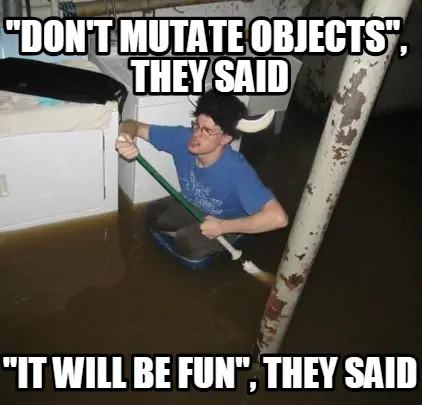 正如我前面提到的,处理对象和数组时,你要么必须记住使用保证 immutability 的方法,要么就使用第三方库。
