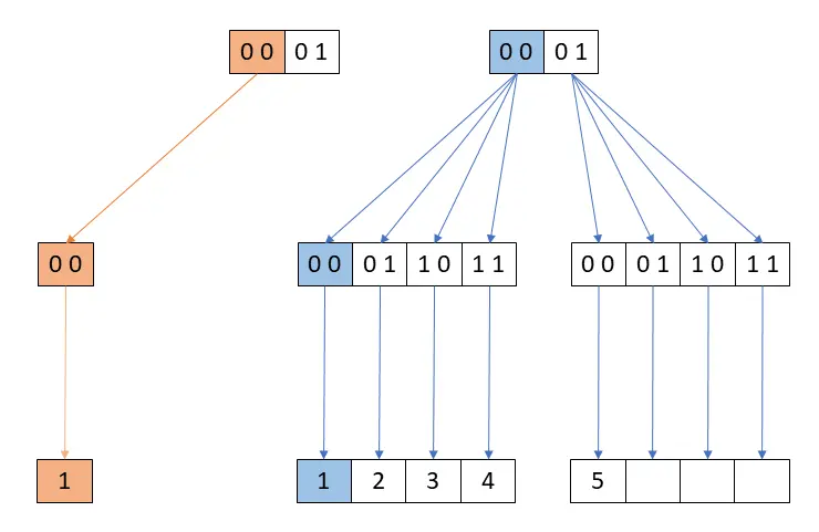 每个层级都有两个字节形成到达值的路径。