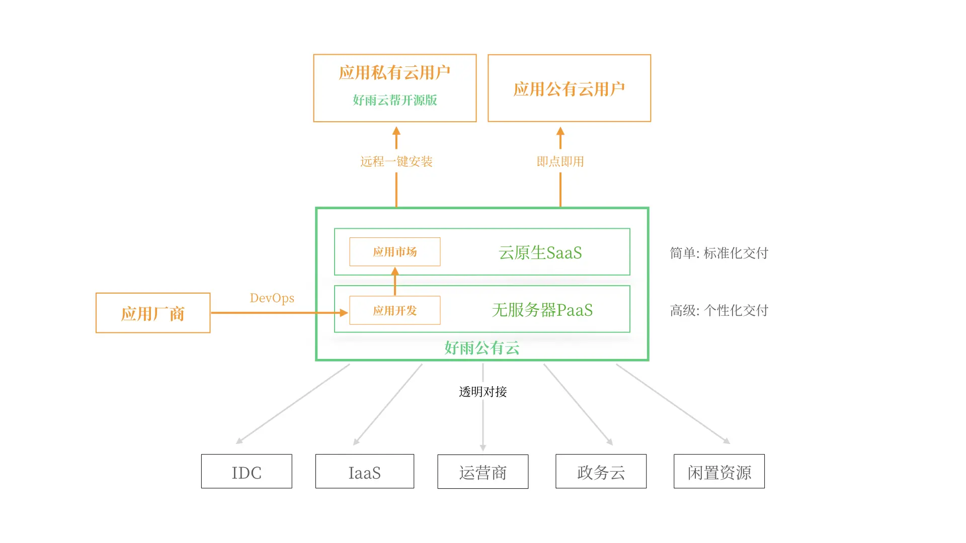 - 既能快速交付公有云场景,又能快速交付私有云场景