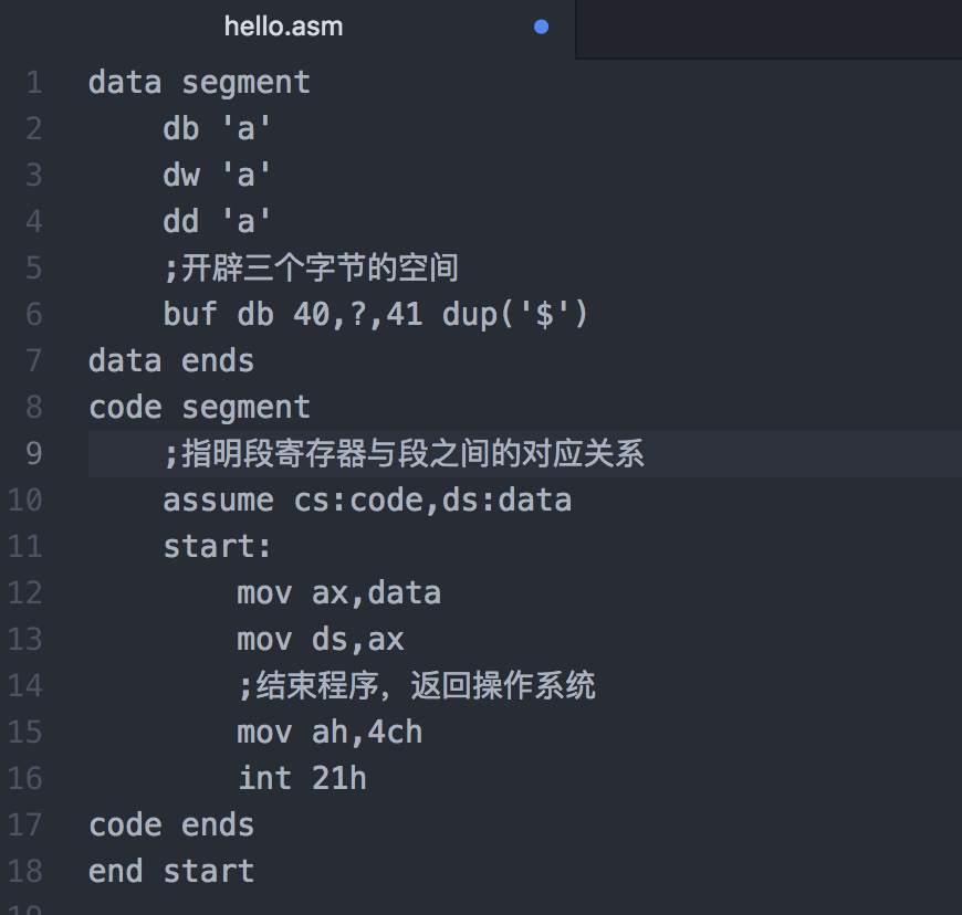 2.掌握Dos功能调用int 21h的1,2,9,10号功能